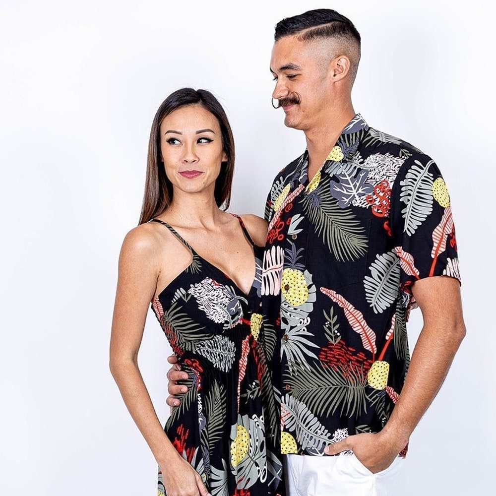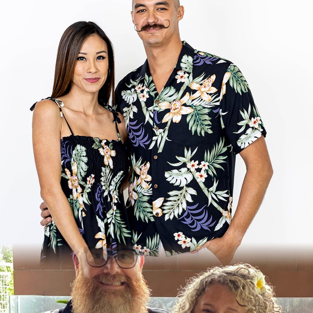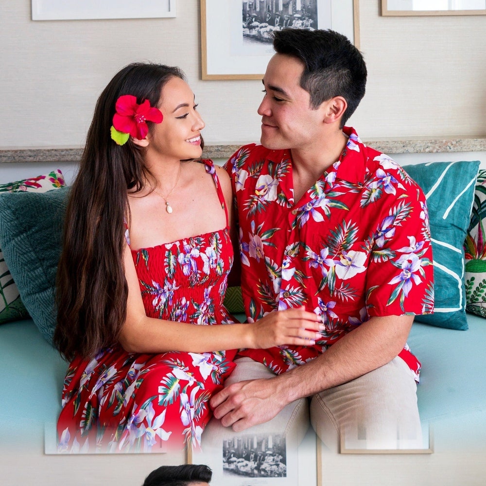What is the best way to style a matching Hawaiian outfit for a special occasion?